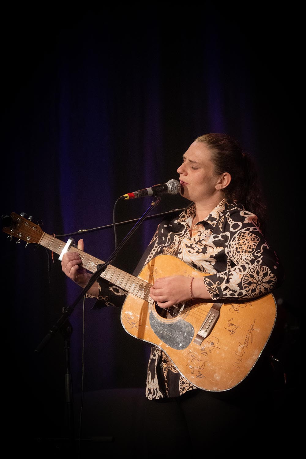 Kathleen Keenan is a singer, songwriter and musician originally from Ennis in Co. Clare who now lives in Tuam, Co. Galway. Kathleen comes from a musical family and grew up with music along with her brother Davie and sister Mary. Kathleen sings traditional ballads as well as other genres and also writes her own songs. She has performed most of her life from busking on the streets, to playing pubs and venues and at a variety of events such as Misleor festival of nomadic cultures, Traveller Pride concerts and the Taidhbhdhearc Theatre, Galway. In 2022 Kathleen received the Agility Award from The Arts Council. In 2023, inspired by her mother, Kathleen produced the album ‘Beautiful Angels’ in 2023. Kathleen also featured in the Pat Collins documentary for RTE Songlines in 2024 and Kathleen is currently working on her second album. Photo by Stephen Long.